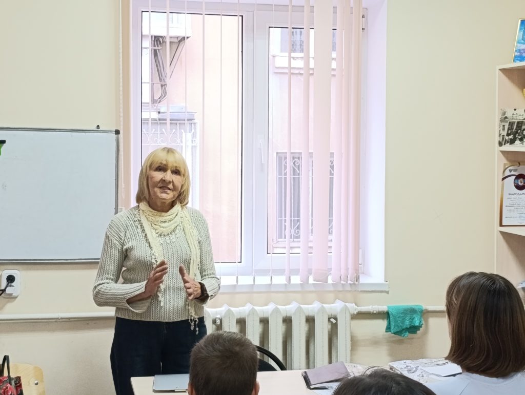 Далее мы задавали вопросы гостье на разные интересующие нас темы. Мы порассуждали об образах и образности, духовности и чувственности, о важности и силе слова, которое должно быть всегда взвешено и точно. Были подняты не только темы «добра» и «зла» и их места в литературе, но и умения быть творческим человеком, видеть особенное в обыденном.
